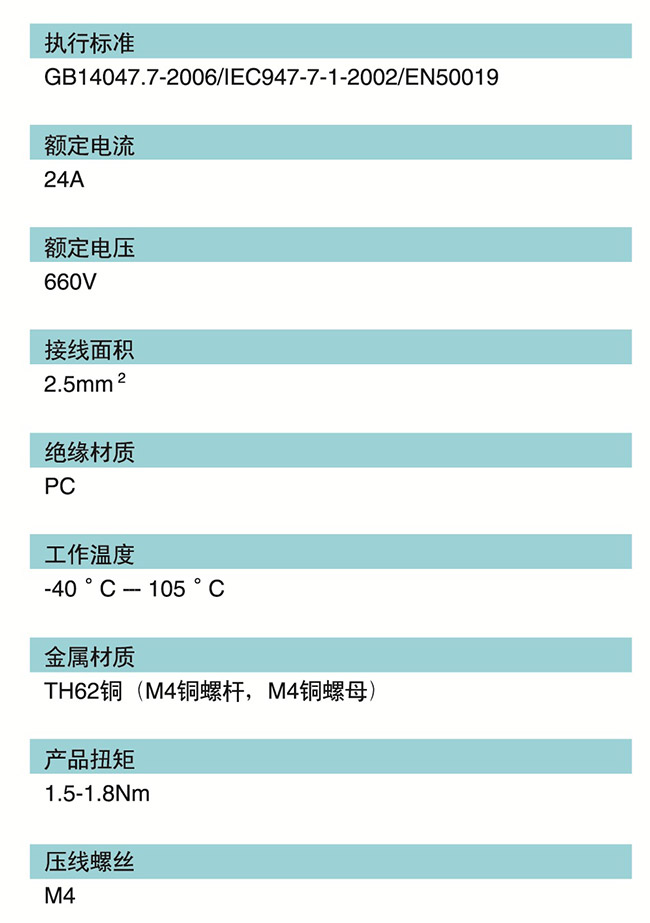 2.絕緣材料采用阻燃增強工程塑料制造,具有絕緣性能好機械強度好耐溫高連續使用溫度達120℃,阻燃性能達到UL94-VO級標準