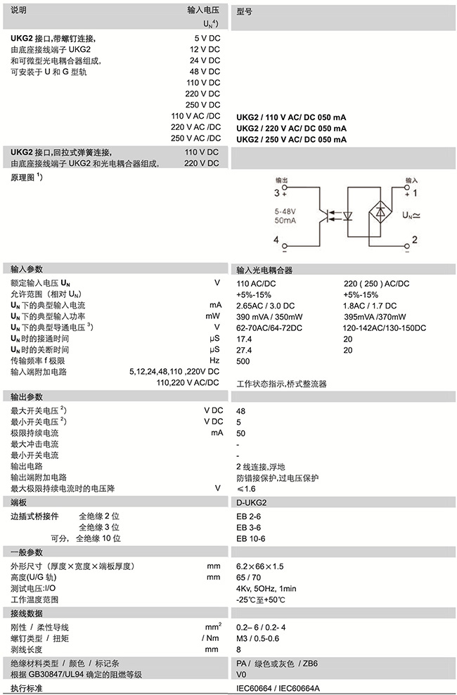 UKG2系列 帶光電耦合器-UKG2/...AC/DC 050MA